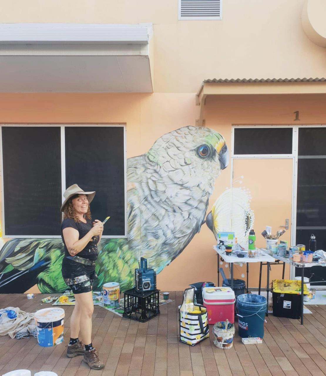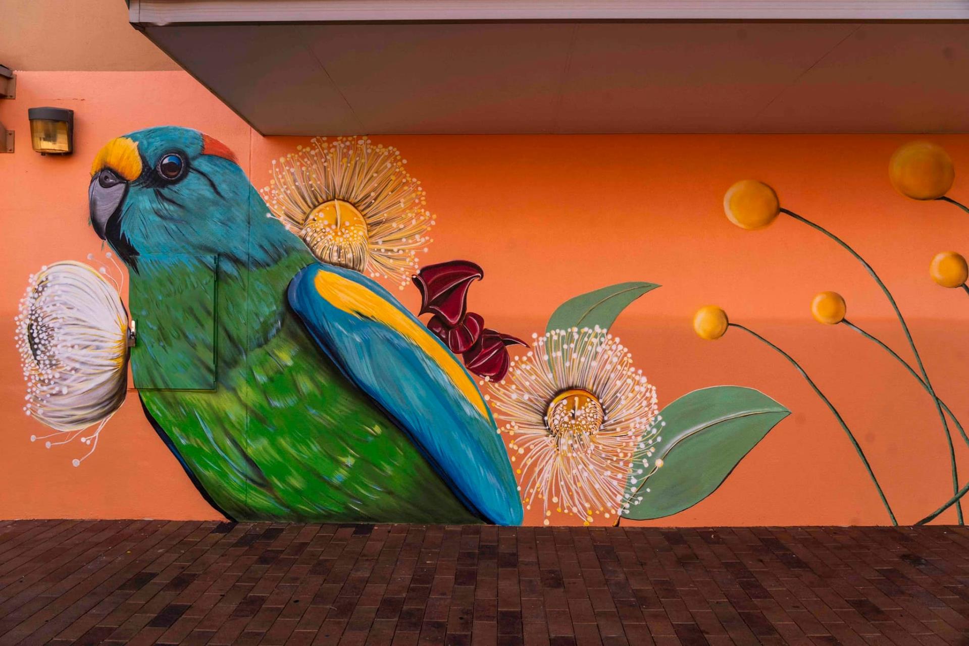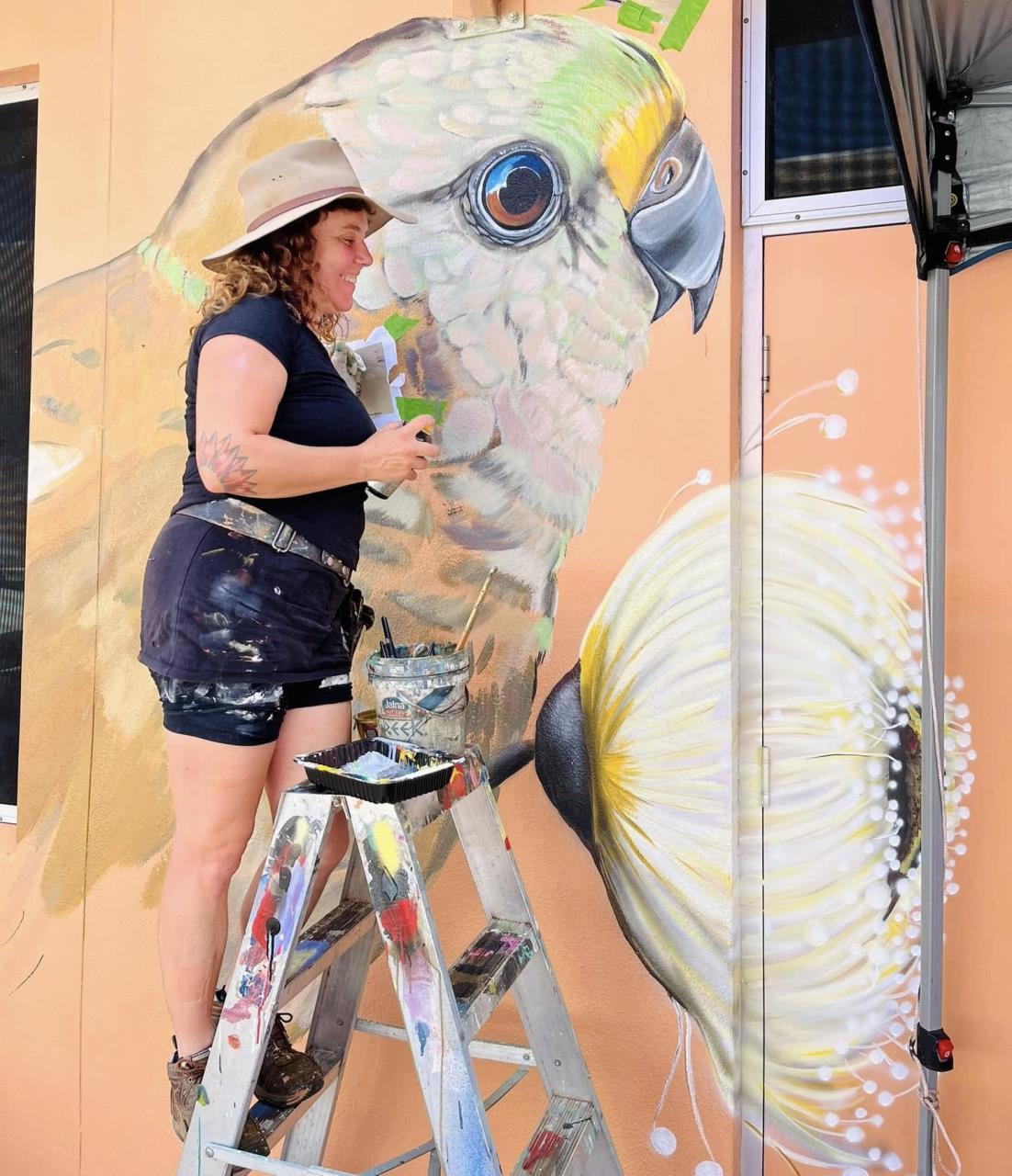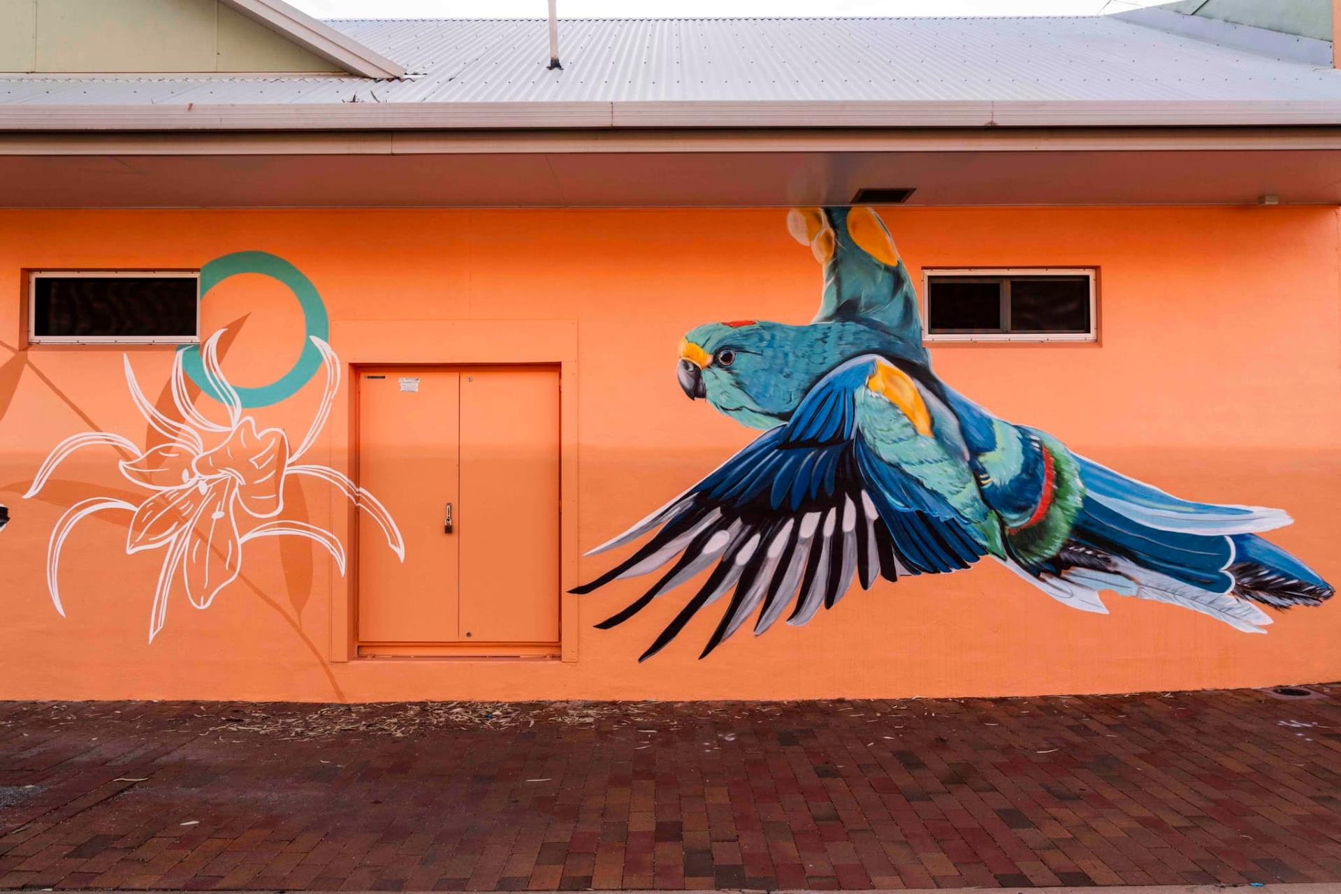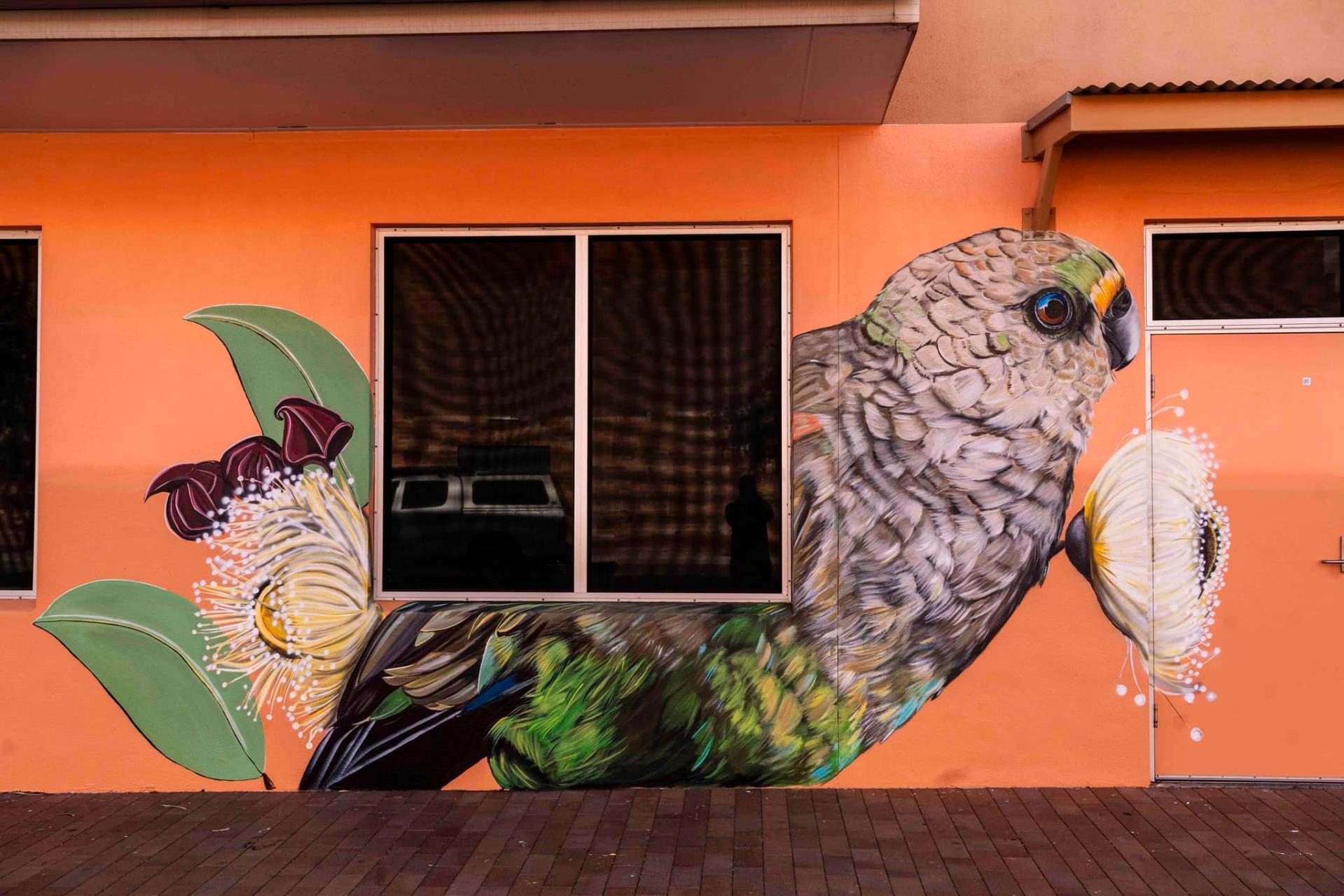 Karine is an Alice Springs based artist who works across acrylics, oils and aerosols. Over the last 10 years, Karine has developed her painting skills to create larger scale murals and portraits - where she feels the happiest. Her style of work integrates native flowers, birds and feminine lines to underscore her concern for climate change and the impact on local biodiversity.