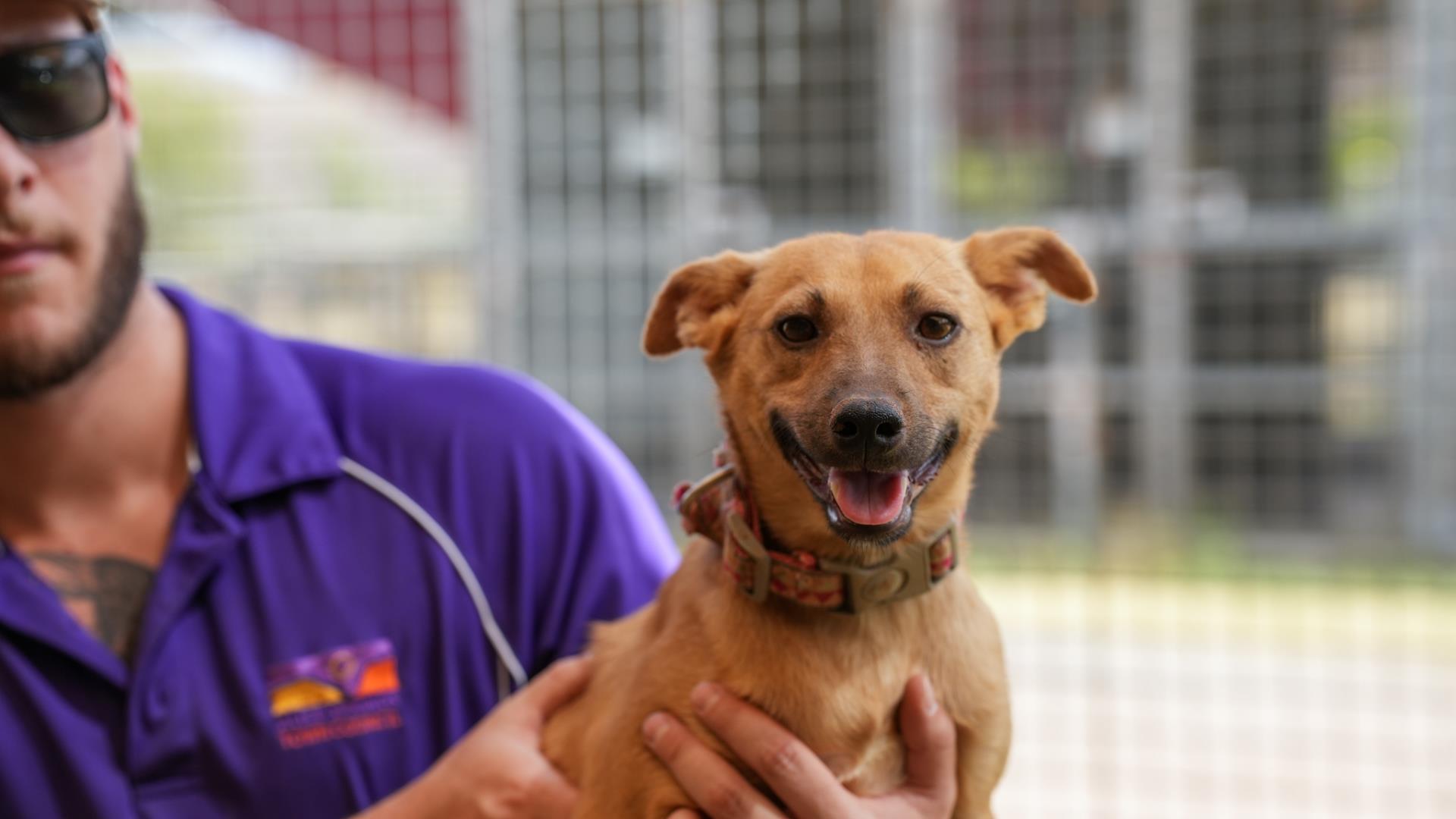 Our indoor boarding facility is fully covered, providing both shade and shelter. It is open via mesh panels, allowing airflow but also meaning it may be affected by wind, heat, and cooler weather. To support your pet’s comfort, we have basic air conditioning and ceiling fans that are used as needed. The facility is secure at all times, and we provide attentive care for your pet in any weather conditions.